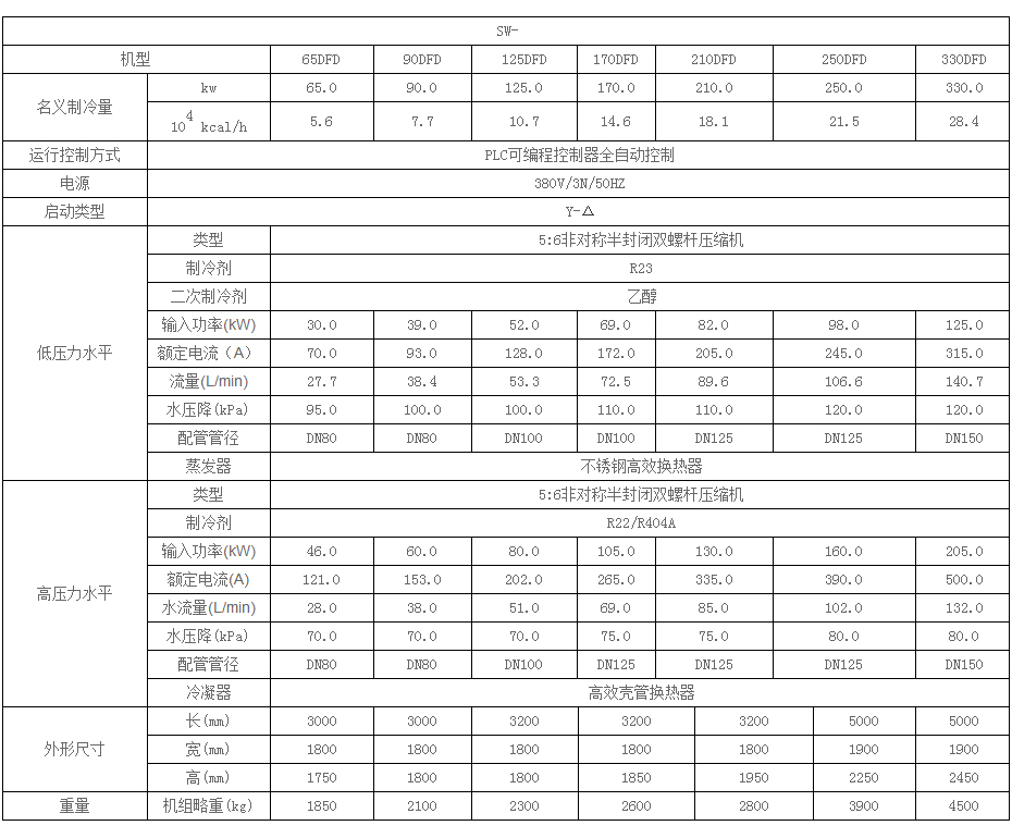 温度条件:冷冻水出水温度范围-57~-47℃,冷却水进水温度范围19~-33℃
