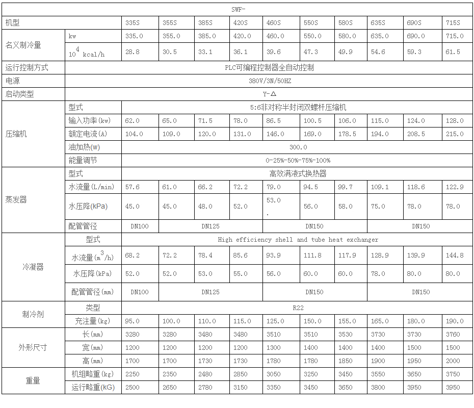 水冷满液式单压缩机参数