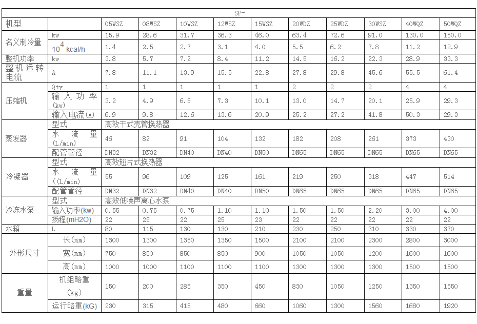 6. 出水温度从常温7℃到-15℃都能做。以下表格参数以常温型为例。