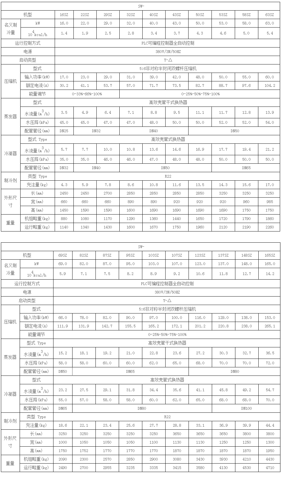 温度条件:冷冻水出水温度范围-37~-27℃,冷却水进水温度范围19~-33℃