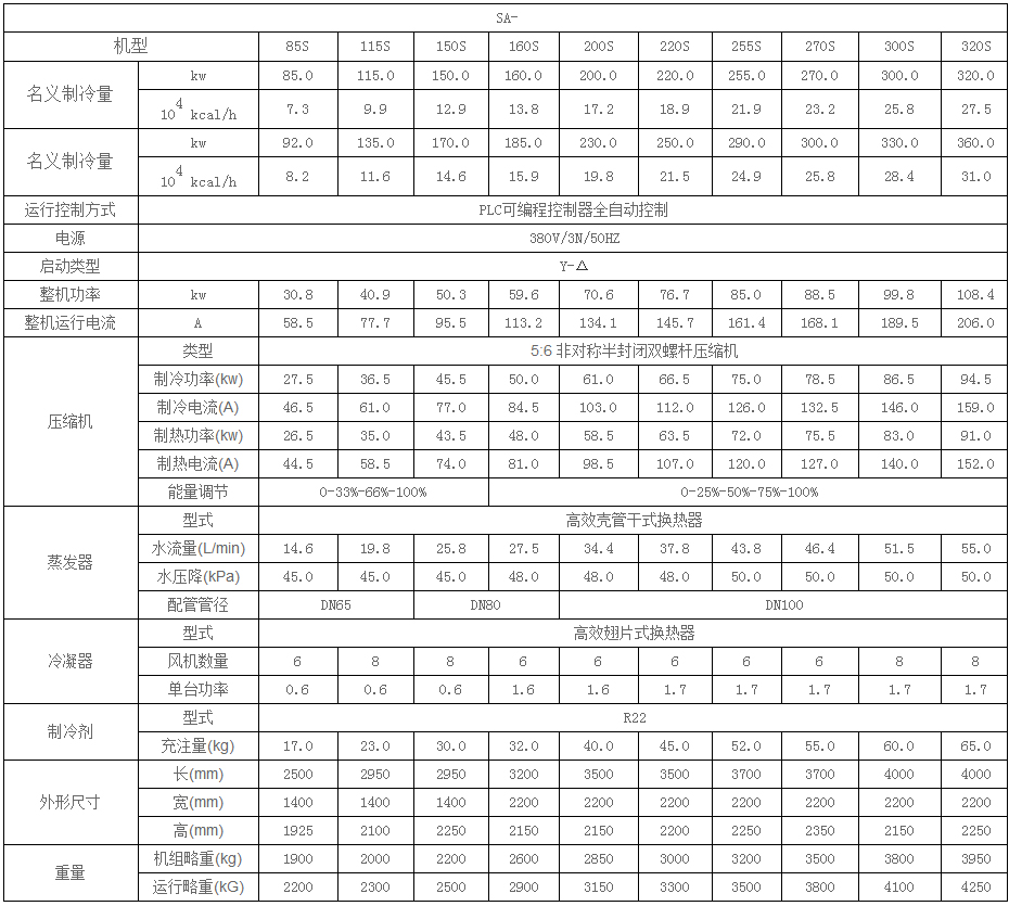 4. 完善的故障保护:高低压保护、空气放电保护、油位保护、水流保护、反向缺相保护、冷冻水防冻保护、冷却水过热保护。